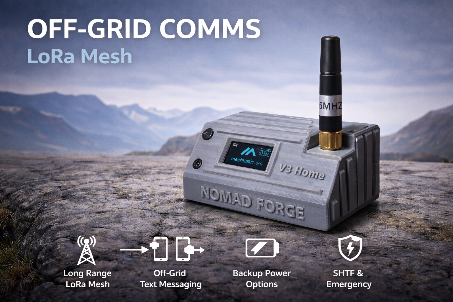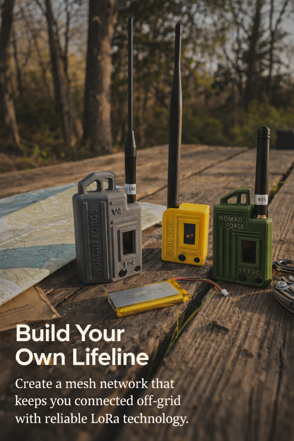 EDC Case Your Nomad Forge EDC Node kit includes everything you need to get started: Heltec V4 LoRa Module - Pre-installed in custom 3D-printed case with "NOMAD FORGE" branding 915MHz...